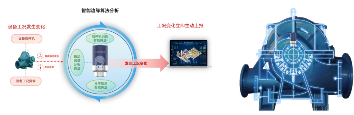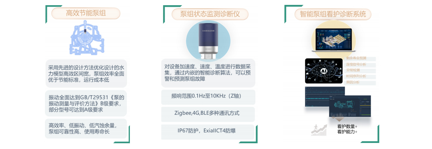 云平台提供基于 AI 诊断的泵组启停状态和故障位置定位等通用功能、以及运行时常统计等旗舰版功能。